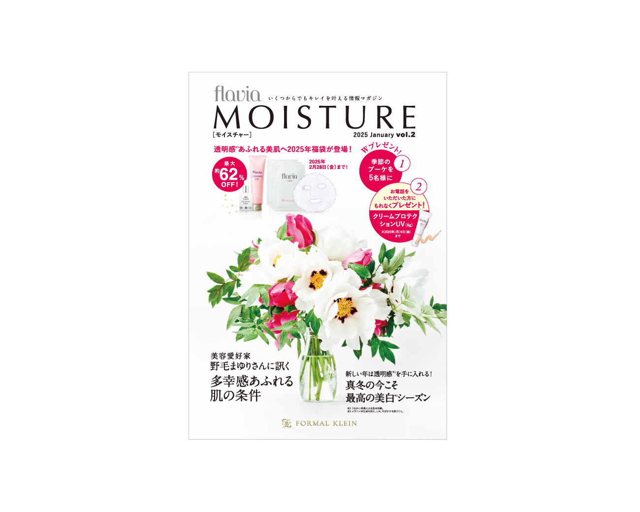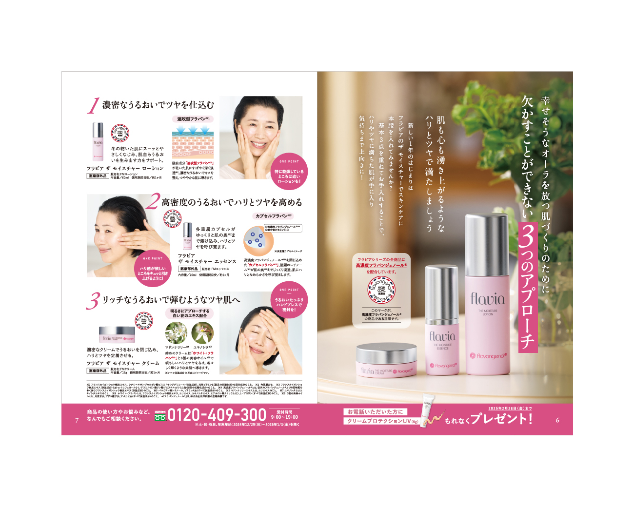 「FORMAL KLEIN」様のスキンケアシリーズ flaviaの会報誌デザインをさせていただきました。