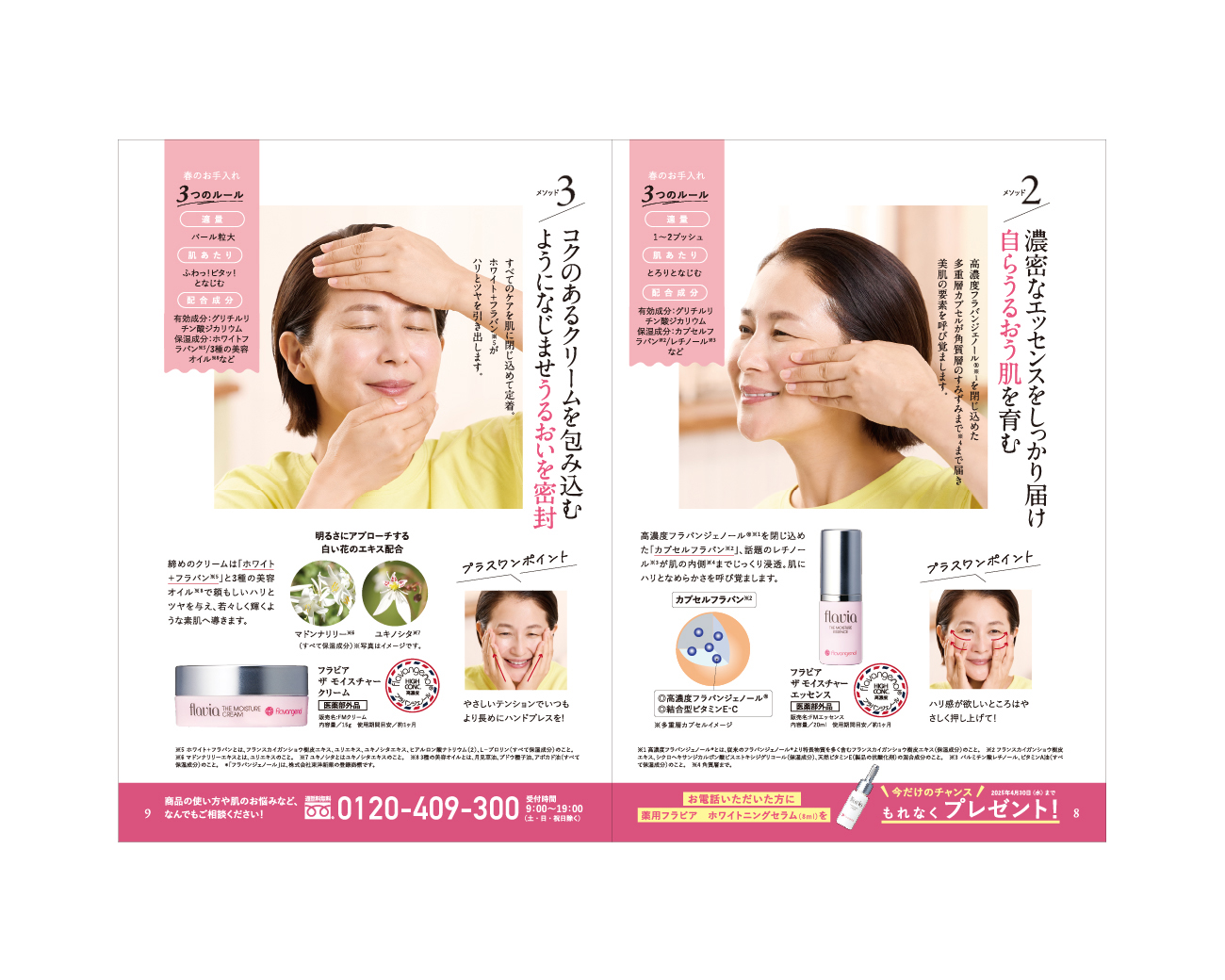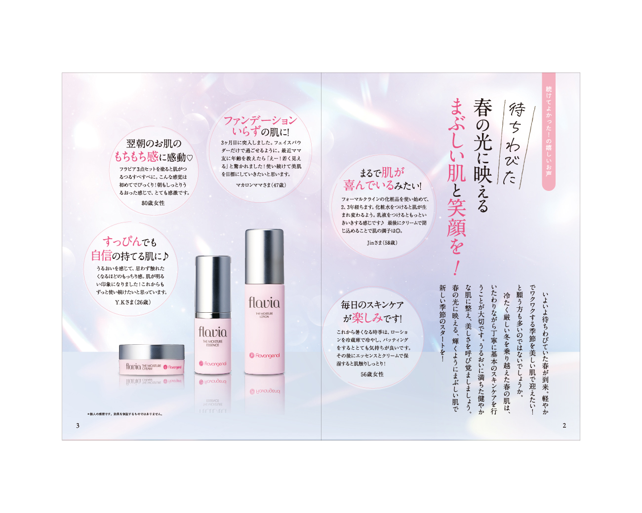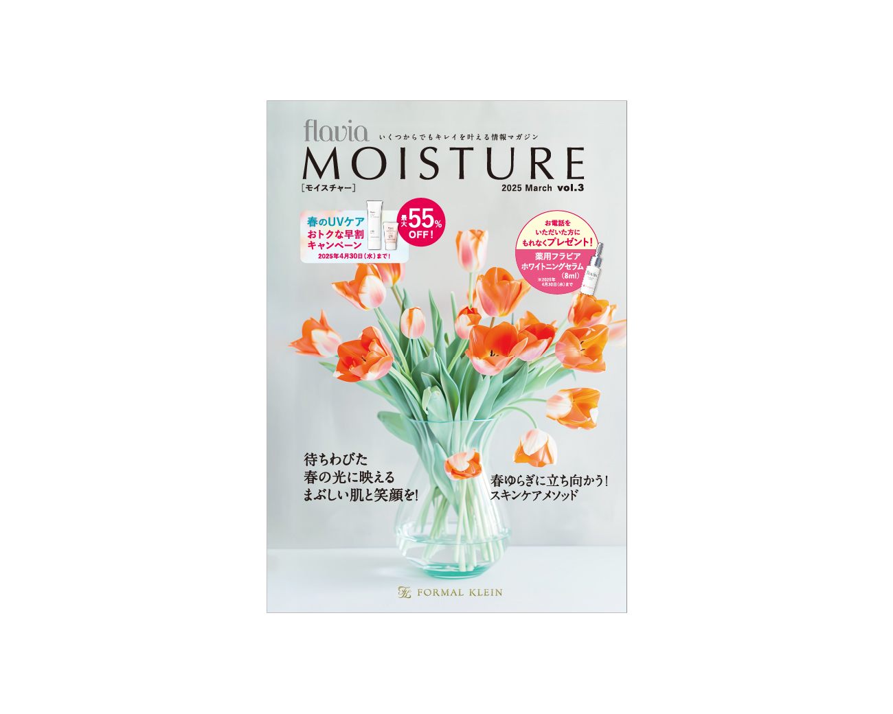 「FORMAL KLEIN」様のスキンケアシリーズ flaviaの会報誌デザインをさせていただきました。