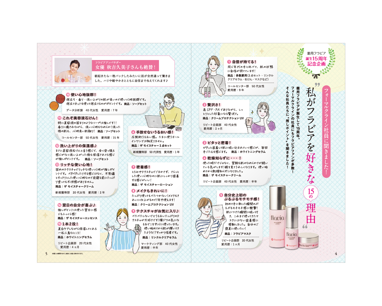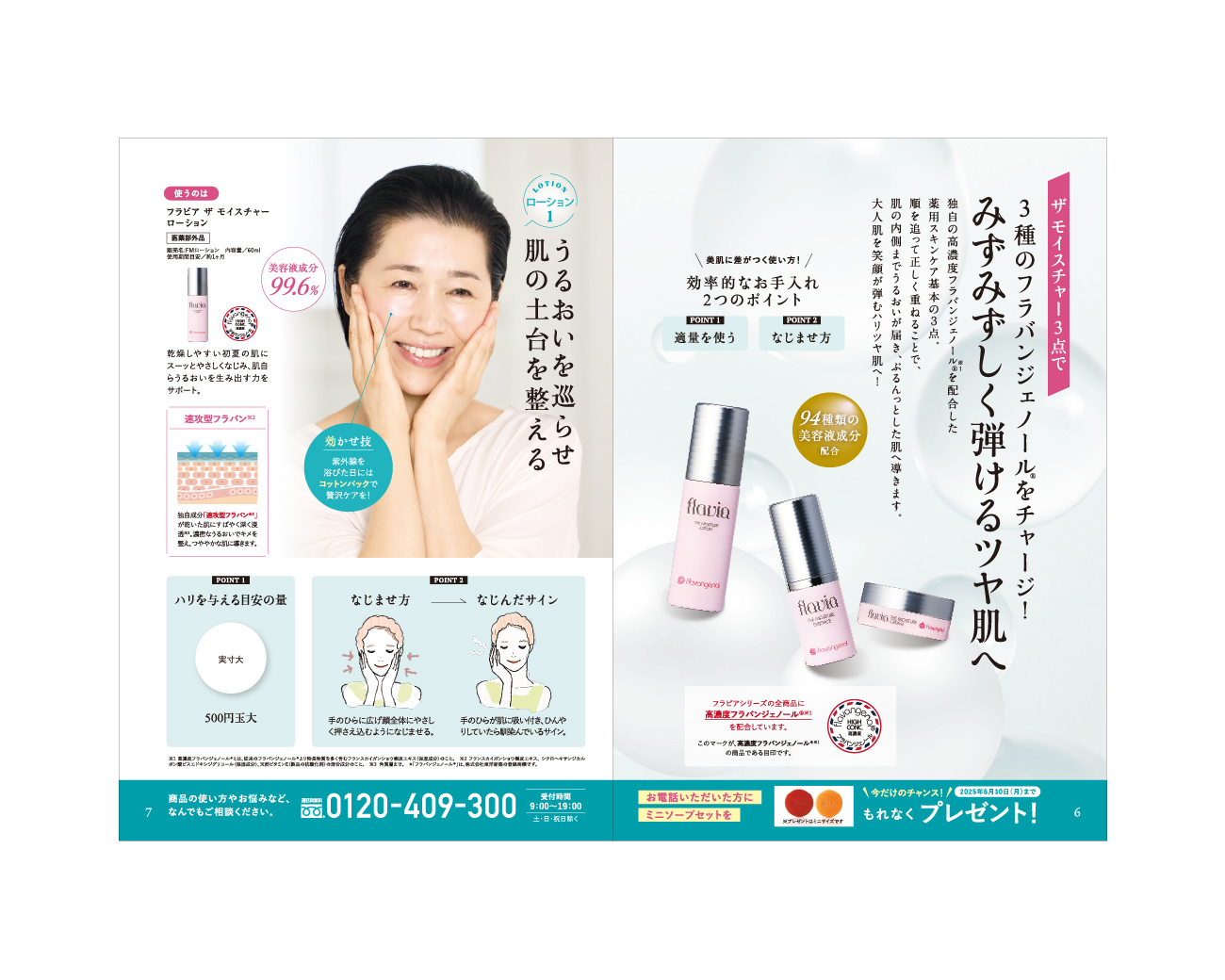 「FORMAL KLEIN」様のスキンケアシリーズ flaviaの会報誌デザインをさせていただきました。